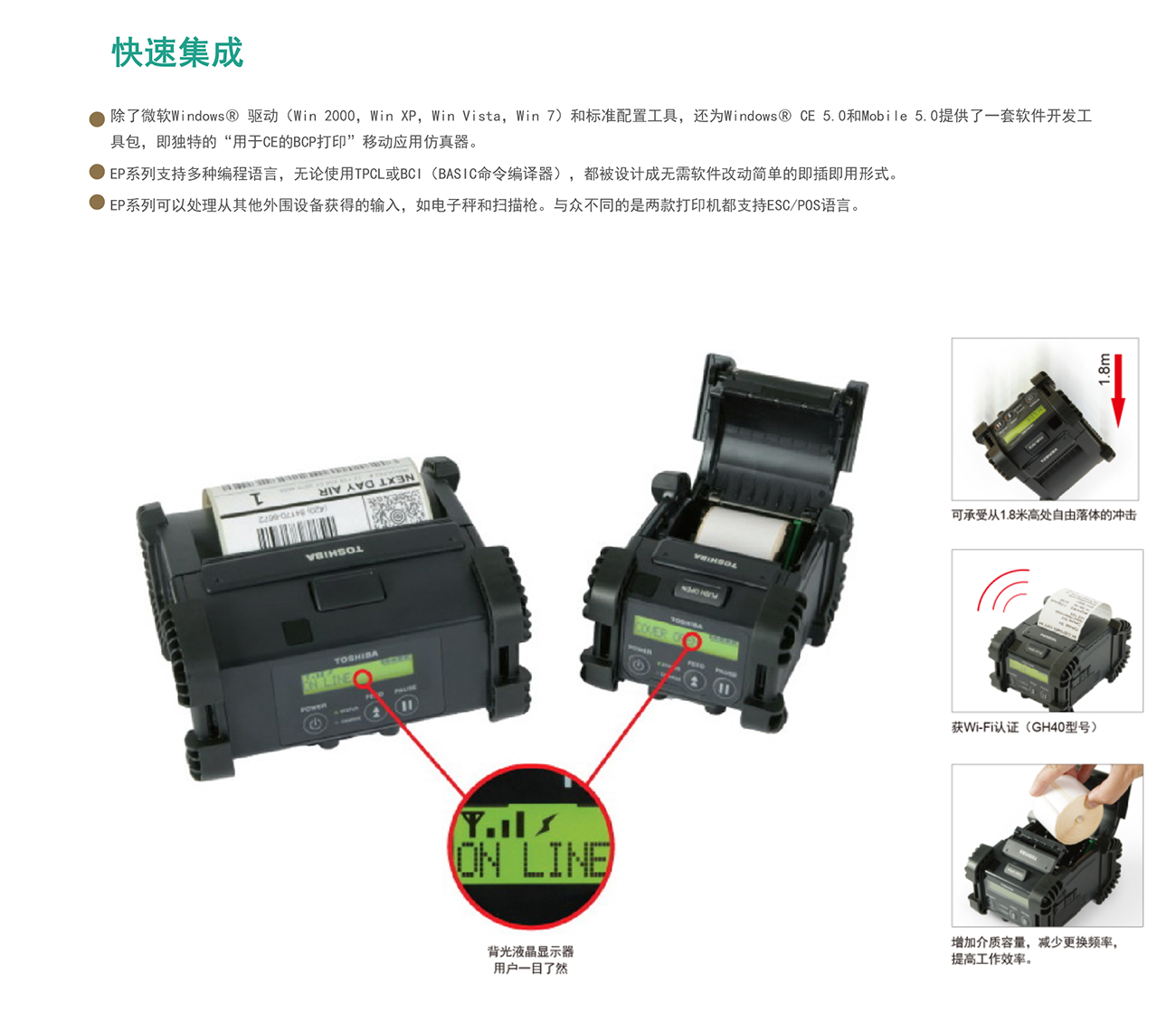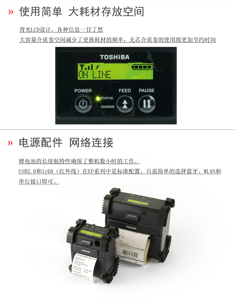 無論您身在何方,我們熱敏打印創(chuàng)新技術就在您的掌中。簡潔時尚,2英寸和4英寸兩款便攜式熱敏打印機的酷黑EP系列,蘊含著東芝對無線、移動、可靠打印方案的承諾。廣泛的應用領域:制造業(yè) / 物流業(yè) / 娛樂業(yè) / 紡織業(yè) / 政府、公共事業(yè) / 醫(yī)療衛(wèi)生業(yè) 聯(lián)系人:李先生 手機:18929304946 陳小姐(業(yè)務):18929304947