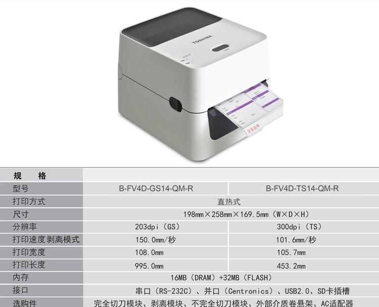 東芝B-FV4D-TS14-CN-R快遞物流零售電子商務(wù)熱敏票據(jù)收據(jù)打印機
