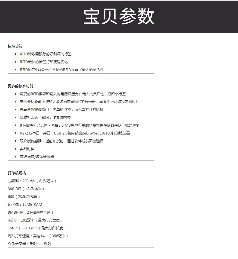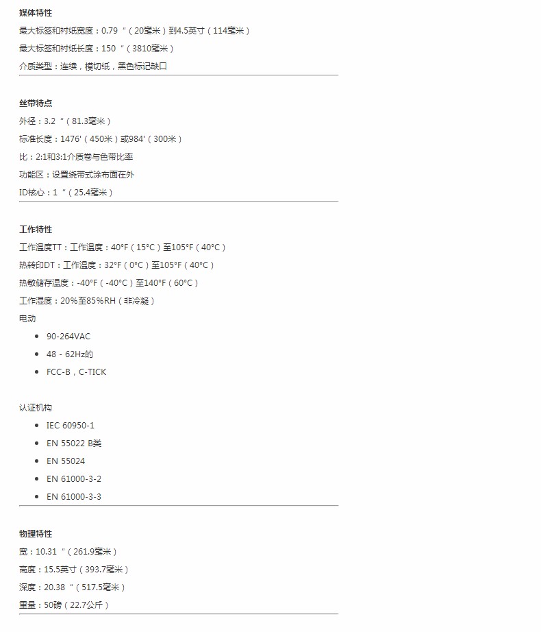 Zebra 110Xi4詳細(xì)規(guī)格參數(shù)