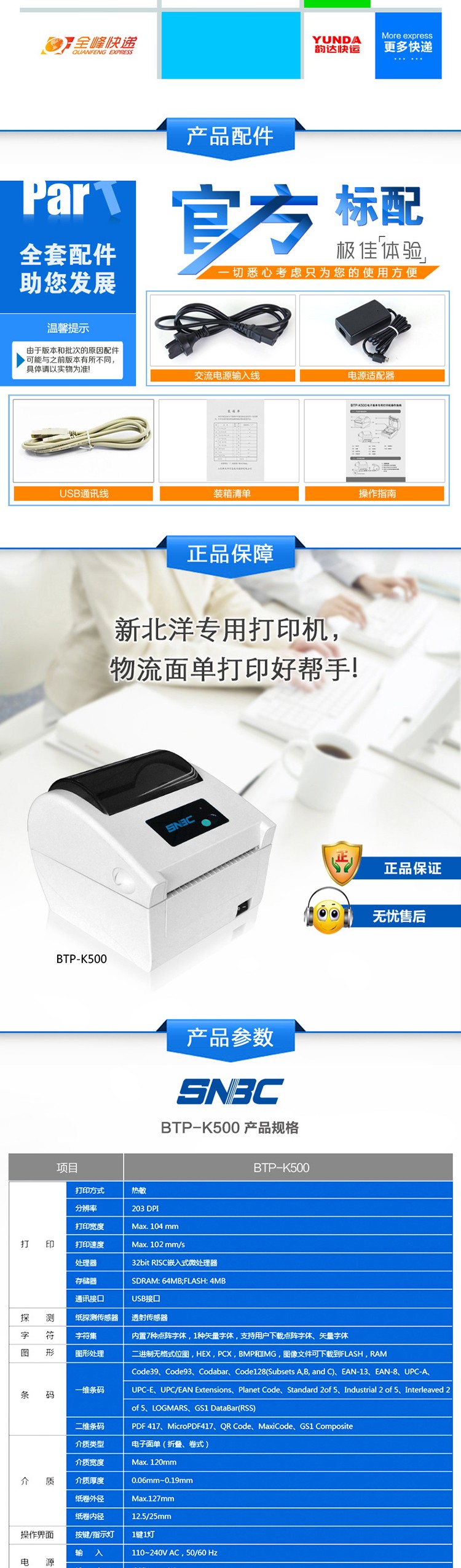 北洋/新北洋BTP-K500 熱敏電子面單打印機(jī)